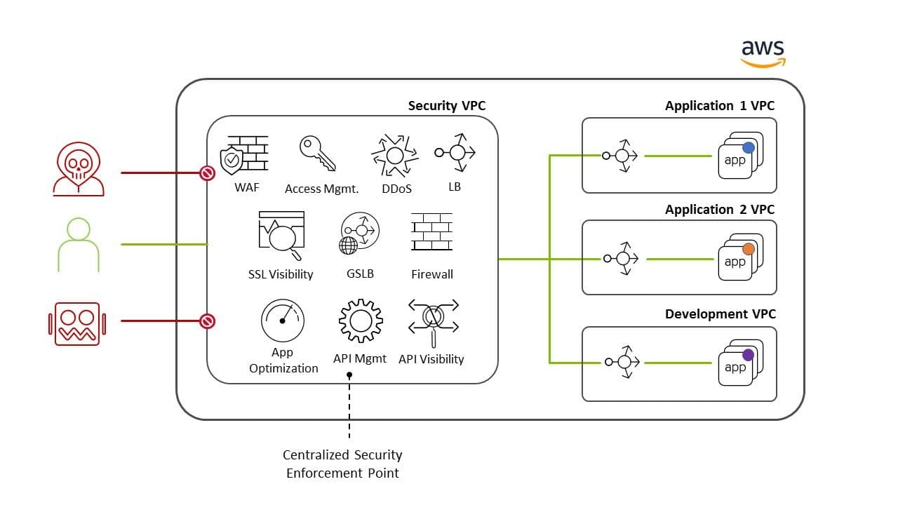 By entrusting F5 with your application and network security on AWS, you make a strategic investment that will protect your entire application portfolio against known, emerging, and future threats. Regardless of whether you’re targeted with injection attacks, automated botnets, or resource crippling denial-of-service attacks, you’ll be able to take comfort knowing that F5 will detect the threat, mitigate the threat, and then log and report it for further analysis. And by adding a centralized security enforcement point at the core of your cloud network, you’ll be able to apply consistent security policies for every app while empowering developers to innovate securely at the edge, supporting them in their pursuit of speed and agility.