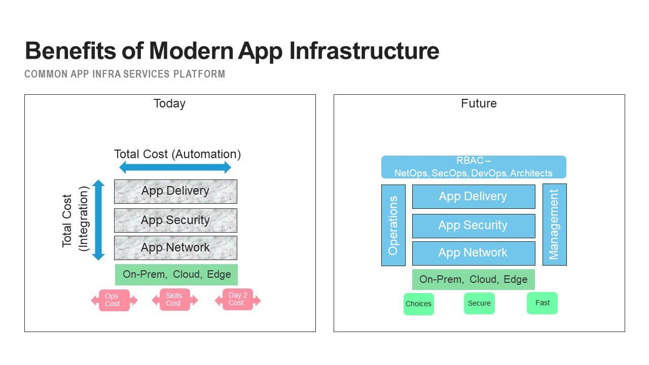 This is the tier where you embrace an infrastructure as code (IaC) approach to automate your app landscape’s infrastructure. This approach simplifies the management and deployment of your app architecture to comply with pre-defined security guardrails, fostering collaboration among teams (NetOps, SecOps, and DevOps) through a unified set of practices and tools. This, in turn, enables the rapid and reliable delivery of applications and their supporting infrastructure at scale.