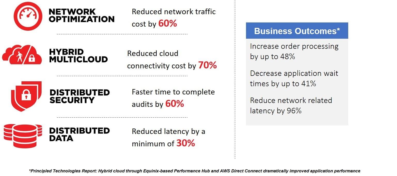 The solution many are adopting in response is to employ private interconnection to multiple clouds, through Equinix. As the peering point for every major public cloud, Equinix offers lightning fast, ultra-low latency connections to the public clouds already used by most organizations via their virtual interconnection solution, Equinix Cloud Exchange Fabric (ECXF).