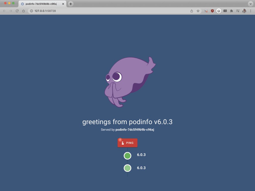 4. In another terminal, open Podinfo in a browser. The greetings from podinfo page indicates Podinfo is running. [@portabletext/react] Unknown block type "codeBlock", specify a component for it in the `components.types` prop