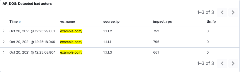 Figure 4: NGINX App Protect DoS identifying bad actors by IP address and TLS fingerprint