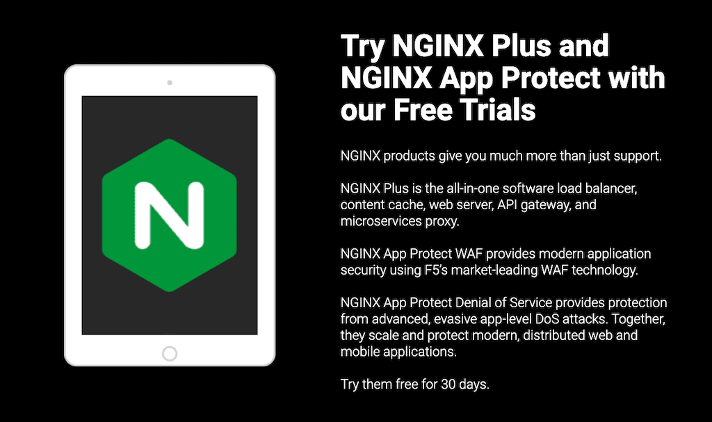 To try NGINX App Protect DoS with NGINX Plus for yourself, start your free 30-day trial today or contact us to discuss your use cases.