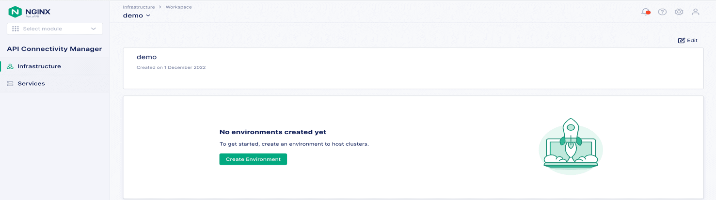 Figure 9: Creating a new Environment in an Infrastructure Workspace