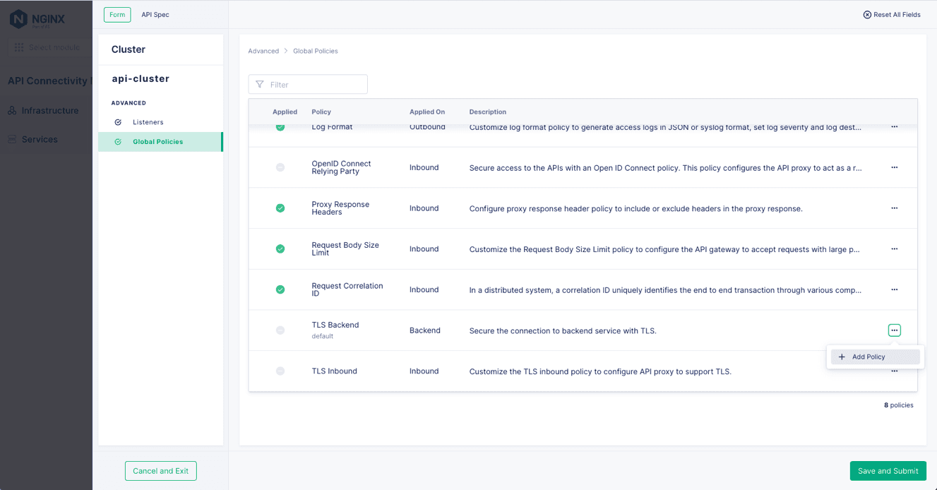 Figure 17: Adding a global policy to an API Gateway Cluster