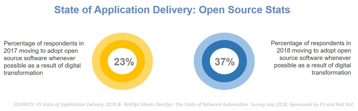 We can see the impact on open source adoption in our own surveys as well. Over the course of just one year, we see digital transformation increasingly driving the adoption of open source software across all industries and companies of every size.