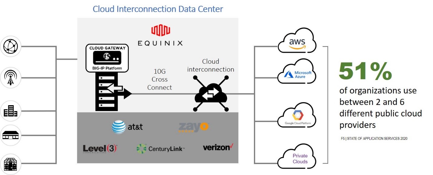 클라우드 게이트웨이 역할에서 F5 BIG-IP는 조직이 일관된 보안/액세스 정책을 제공하고, 애플리케이션 보호 기능을 도입하고, 트래픽 흐름과 애플리케이션 사용에 대한 완전한 가시성을 확보하는 데 필요한 애플리케이션 서비스를 제공합니다. 퍼블릭 클라우드 공급자가 호스팅하는 애플리케이션에 원치 않는 트래픽(악성 행위자, 봇, 공격)이 도달하는 것을 방지하여 클라우드 비용을 줄일 수 있습니다. Equinix SmartKey TM을 활용하면 트래픽을 보호하는 중앙 집중형 키 관리 솔루션으로 보안을 강화할 수 있으며, 이를 통해 퍼블릭 클라우드에 암호화 키를 저장하는 위험한 관행을 없앨 수 있습니다.