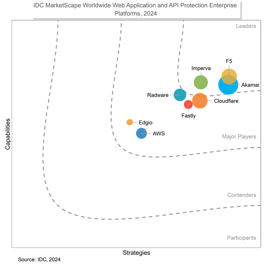 F5가 IDC MarketScape의 리더로 선정되었다는 소식을 듣고 매우 기쁩니다. 월드와이드 웹 애플리케이션 및 API 보호 엔터프라이즈 플랫폼 2024 공급업체 평가(문서 #US51795524, 2024년 9월).