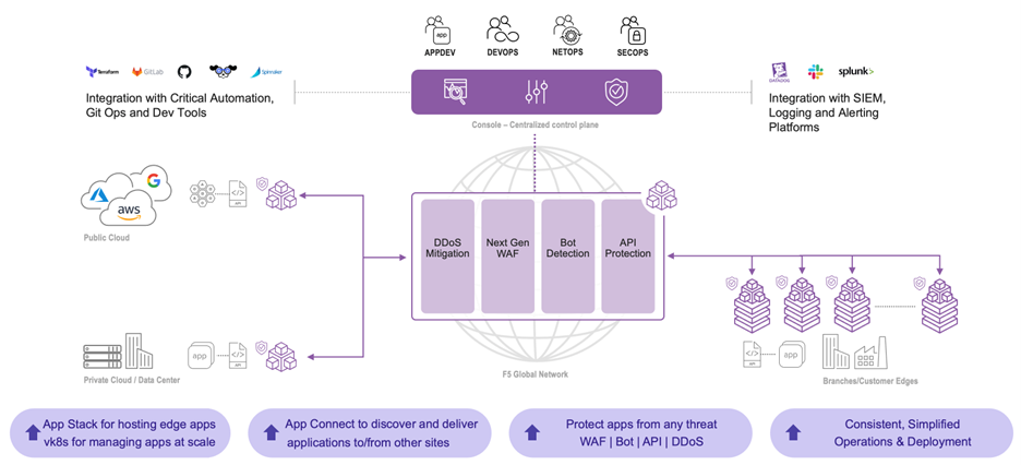 F5 분산 클라우드 서비스는 원활한 엣지 배포가 필요하고 최신 애플리케이션 제공의 과제를 극복하는 데 도움이 필요한 기업에 이상적인 솔루션입니다. 분산 클라우드 서비스는 엣지 배포를 단순화하고, 애플리케이션 제공을 가속화하고, 엔터프라이즈급 보안으로 배포를 강화하도록 설계된 SaaS 관리형 제품과 서비스 모음을 제공합니다.
