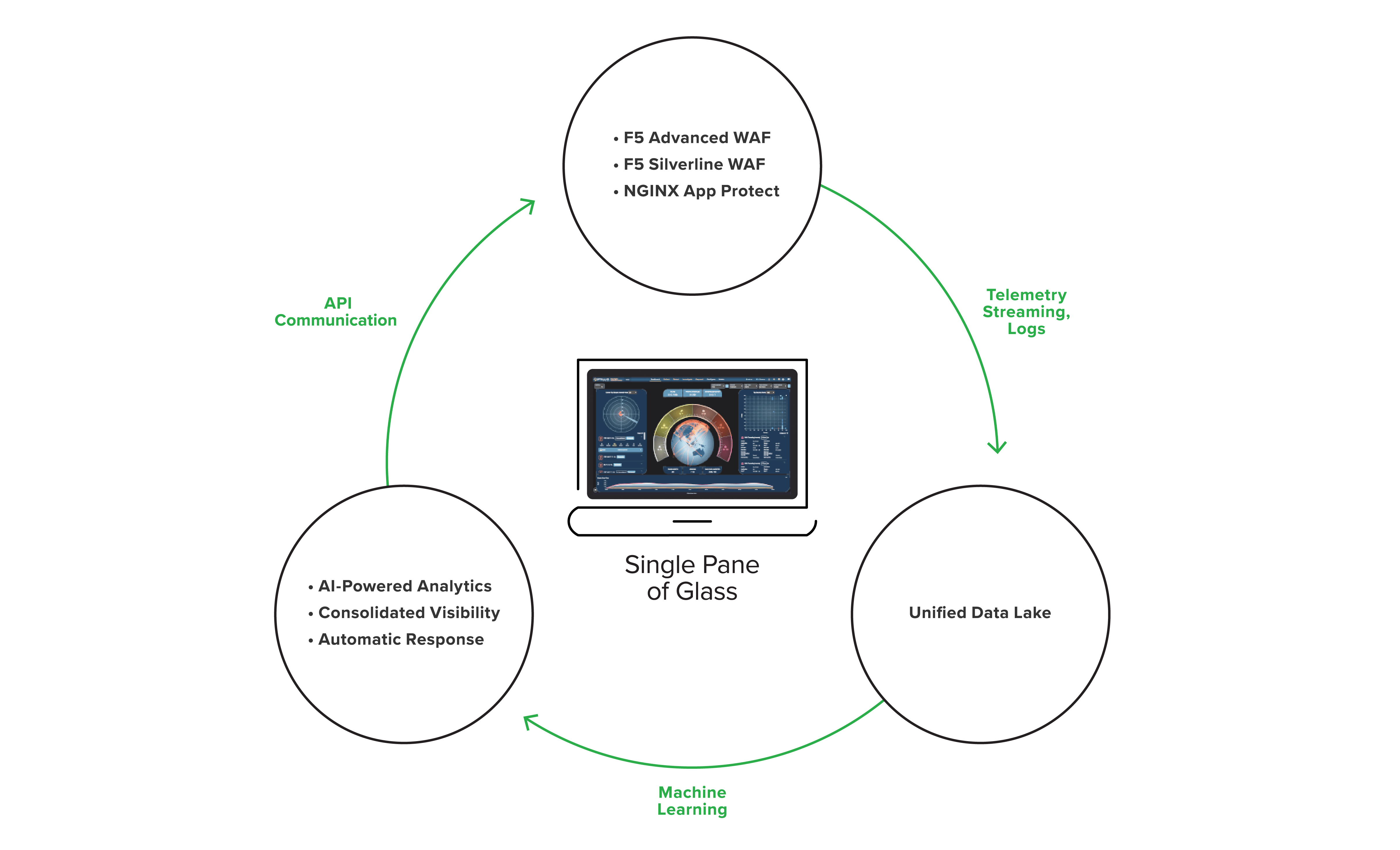 A colaboração melhora a segurança em todo o mecanismo F5 WAF com altos níveis de visibilidade, correlação e recursos de resposta unificados