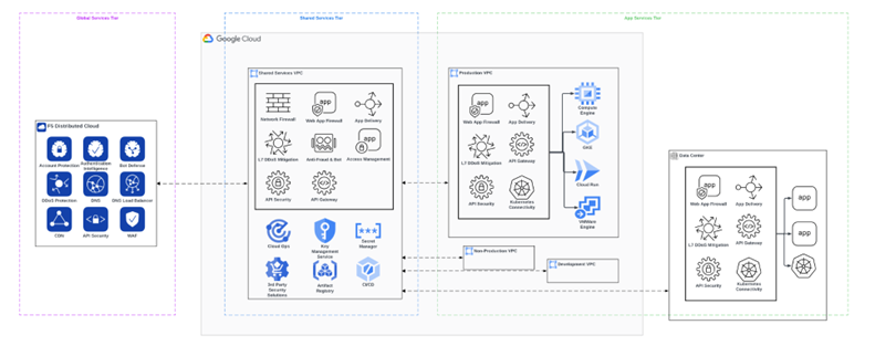Se você não teve a oportunidade de comparecer ao evento, a F5 compartilhou demonstrações interativas em nosso estande, que foi um dos mais movimentados em contagem de leads, para mostrar como o F5 Distributed Cloud Services e o NGINX complementam os serviços do Google Cloud com automação, segurança e desempenho. Nossas demonstrações incluíram: