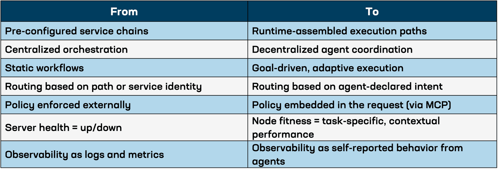 AI agents are not simply intelligent applications. They represent a structural shift in how applications operate, decide, and adapt. Unlike traditional systems, agents don’t just respond to traffic policies, they bring their own. Each request they send carries not only data, but embedded logic: what should happen, how fallback should behave, and what success looks like.